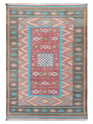 Dhurrie Pink Blue 9.11×13.2 Hand Woven Rug