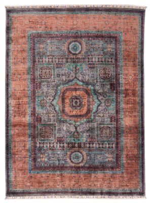 Mamluk Orange Blue 5.5×8.2 Hand Knotted Rug