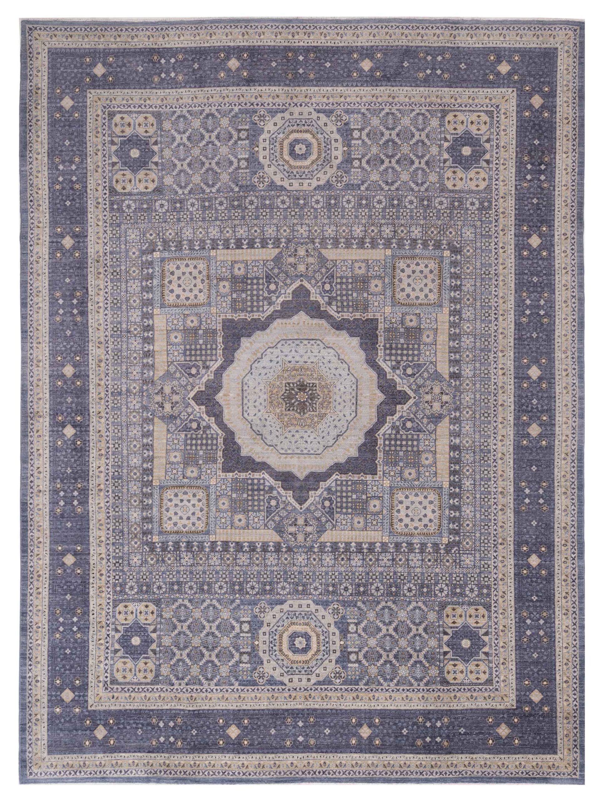 Mamluk Blue Charcoal 9.1×12.5 Hand Knotted Rug