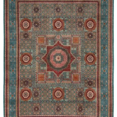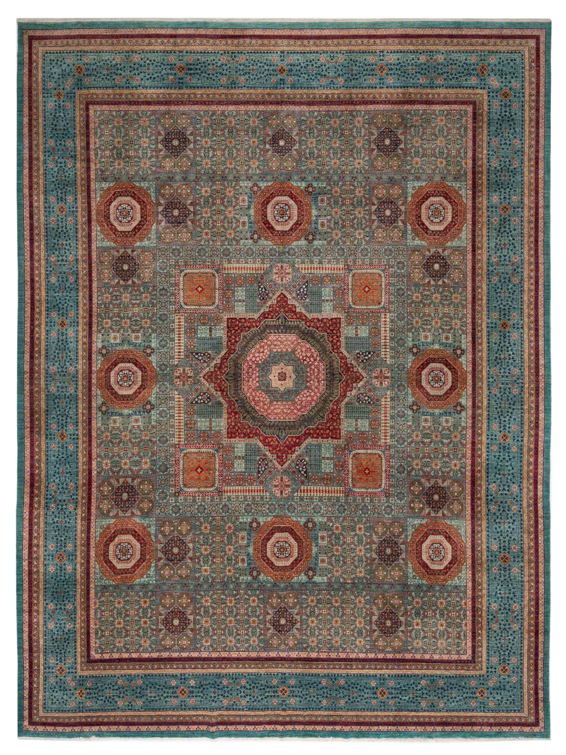 Mamluk Green Blue 13.6×16.8 Hand Knotted Rug