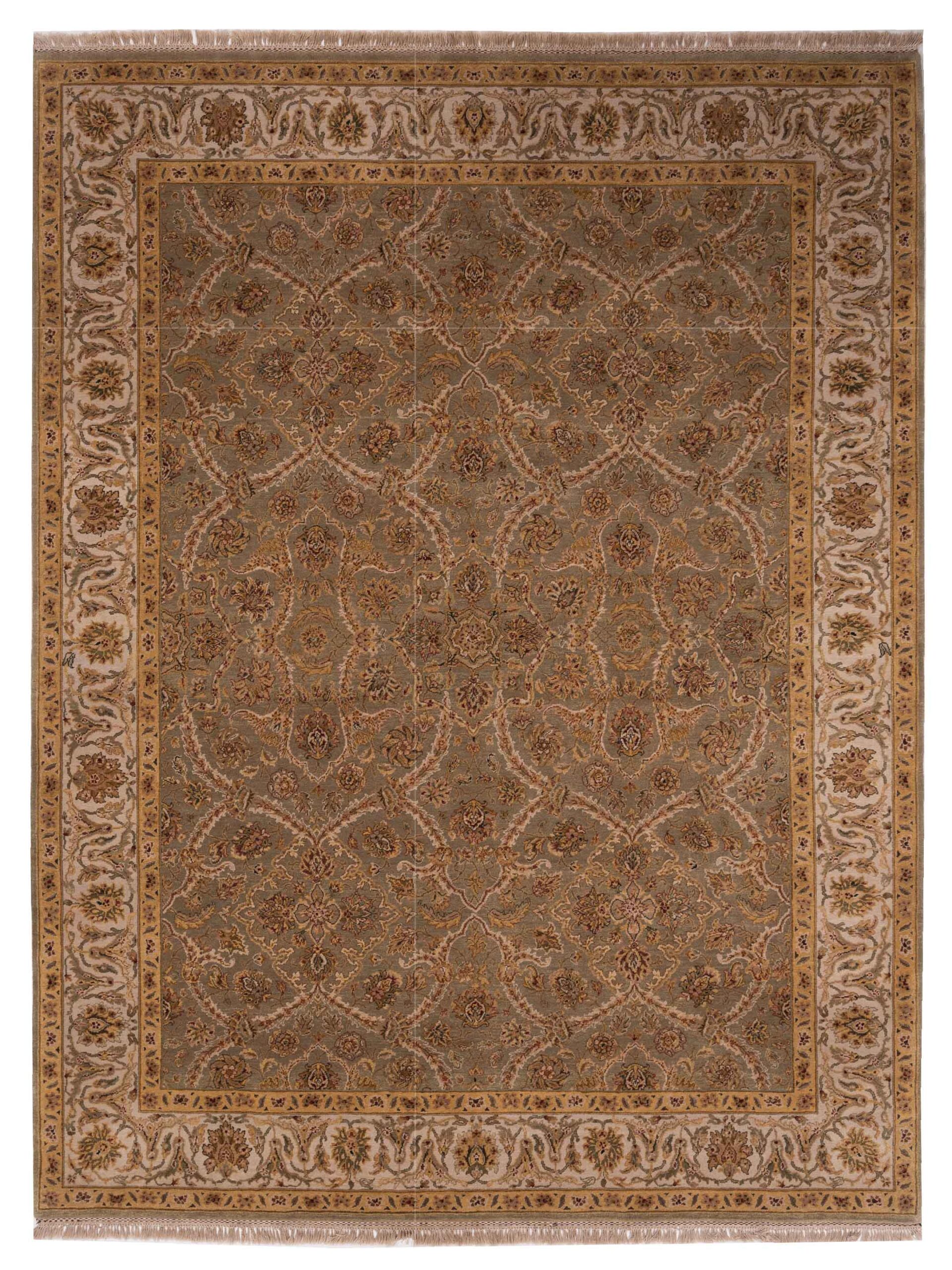 Queen Sage Green Ivory 9.3×12.3 Hand Knotted Rug