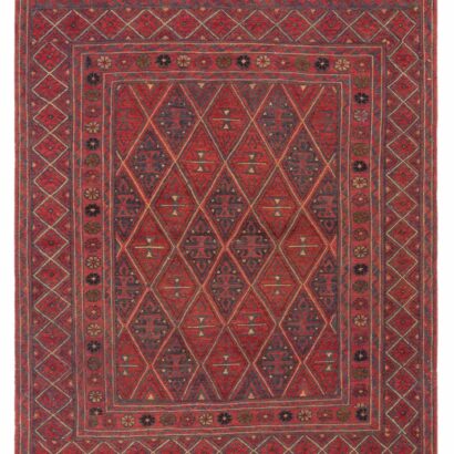 Created by Baluchi Nomads, this Collection mixes the bold and diverse style of the Baluch Collection with the robust weaving style known as Soumak weaving. This creates a rug that is both bold and sturdy, robust in construction yet incredibly soft underfoot. This adds an extra layer of warmth to the rug that is unmatched underfoot. Motifs of ancient symbols such as birds and geometrical animals delight the eye while bringing a touch of nature to any space. The ancient and complex construction technique used to make these rugs produces a flat- weave of New Zealand wool and cotton rug that is thick, strong and very durable. Another advantage of these Soumak rugs is that they are double sided and reversible