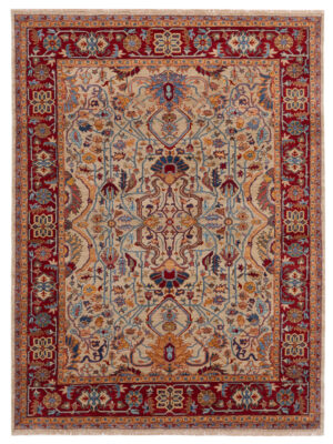 Fine Loom Ivory Red 8×10 Hand Knotted Rug